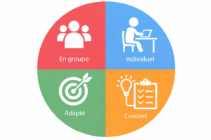Dans la formation continue, la pédagogie différenciée se matérialise souvent par une architecture hybride : un socle commun travaillé en groupe, puis des séquences d’entraînement individualisées, des études de cas adaptées aux réalités de chacun, des feedbacks personnalisés, et une progression pensée sur plusieurs étapes plutôt qu’en “one shot”. L’exemple rennais cité plus haut illustre bien cette logique : le collectif sert à construire une culture commune et à créer de l’émulation, l’individuel sert à traiter les blocages spécifiques et à ancrer les compétences dans le quotidien professionnel.